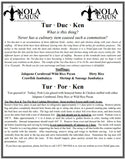 This Gourmet Turducken is not your typical discount supermarket Turducken. This is the Gourmet Turducken found in your local high end foodie market. A Turducken is the combination of three different birds. a turkey, a duck and a chicken along with your choice of one of our homemade Cajun stuffings. Not only are the stuffings made from real Cajun recipes but are also made fresh the day the Turducken is put together so you can be assured you are receiving the freshest product possible. The turkey is the outside bird, with the duck and chicken inside. The different layers of meat are then separated by a layer of stuffing. This Turducken is truly unique and appropriately labeled a Gourmet Cajun creation.