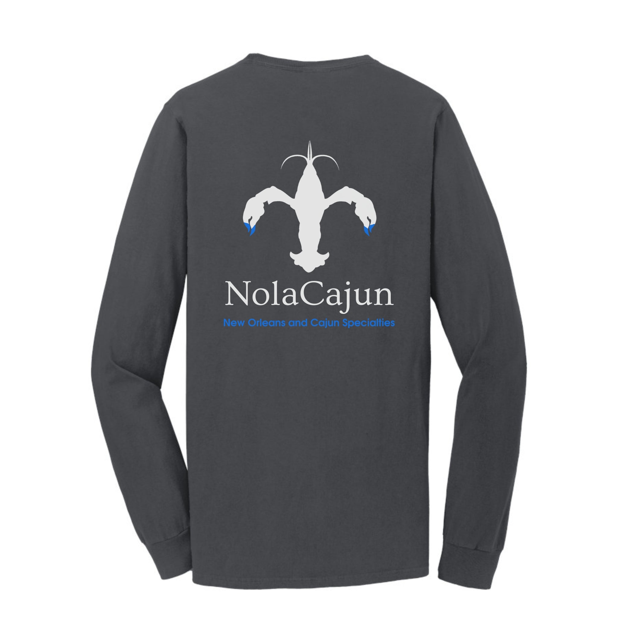 Our NolaCajun Logo design features our white crawfish with blue tips graphic our new soft long sleeved t-shirt. Perfect for the beach or lake! Unisex t-shirt.