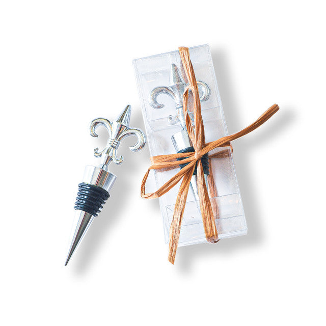 This wine stopper is topped by a fleur de lis. It comes in a clear box -- ready for selling and giving. And, the price is right!