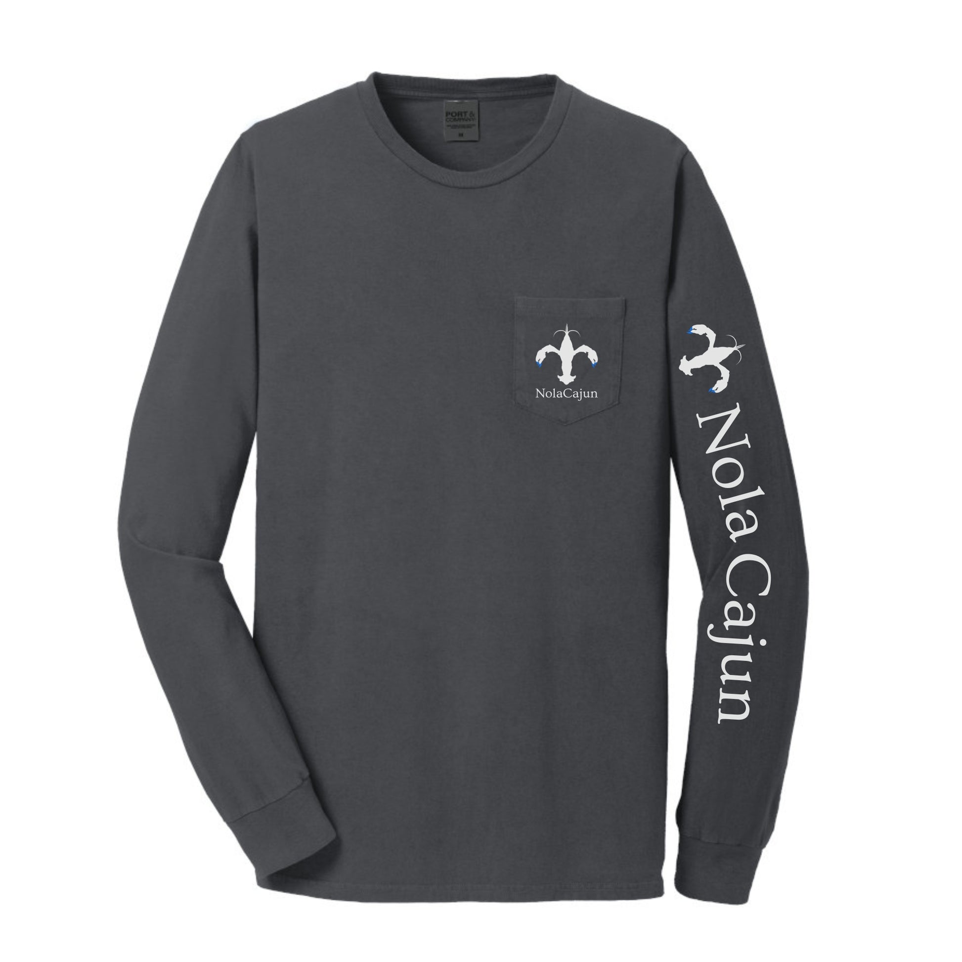 NolaCajun Grey & Blue Long Sleeve Logo T-shirt