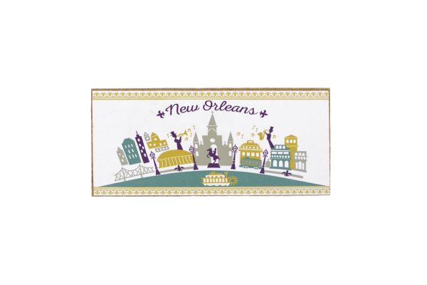 A rectangular shaped magnet featuring our popular “Nola” design. Features the New Orleans Cathedral, Jackson Square Monument, the New Orleans Superdome, a streetcar and more– all staples of the city of New Orleans.